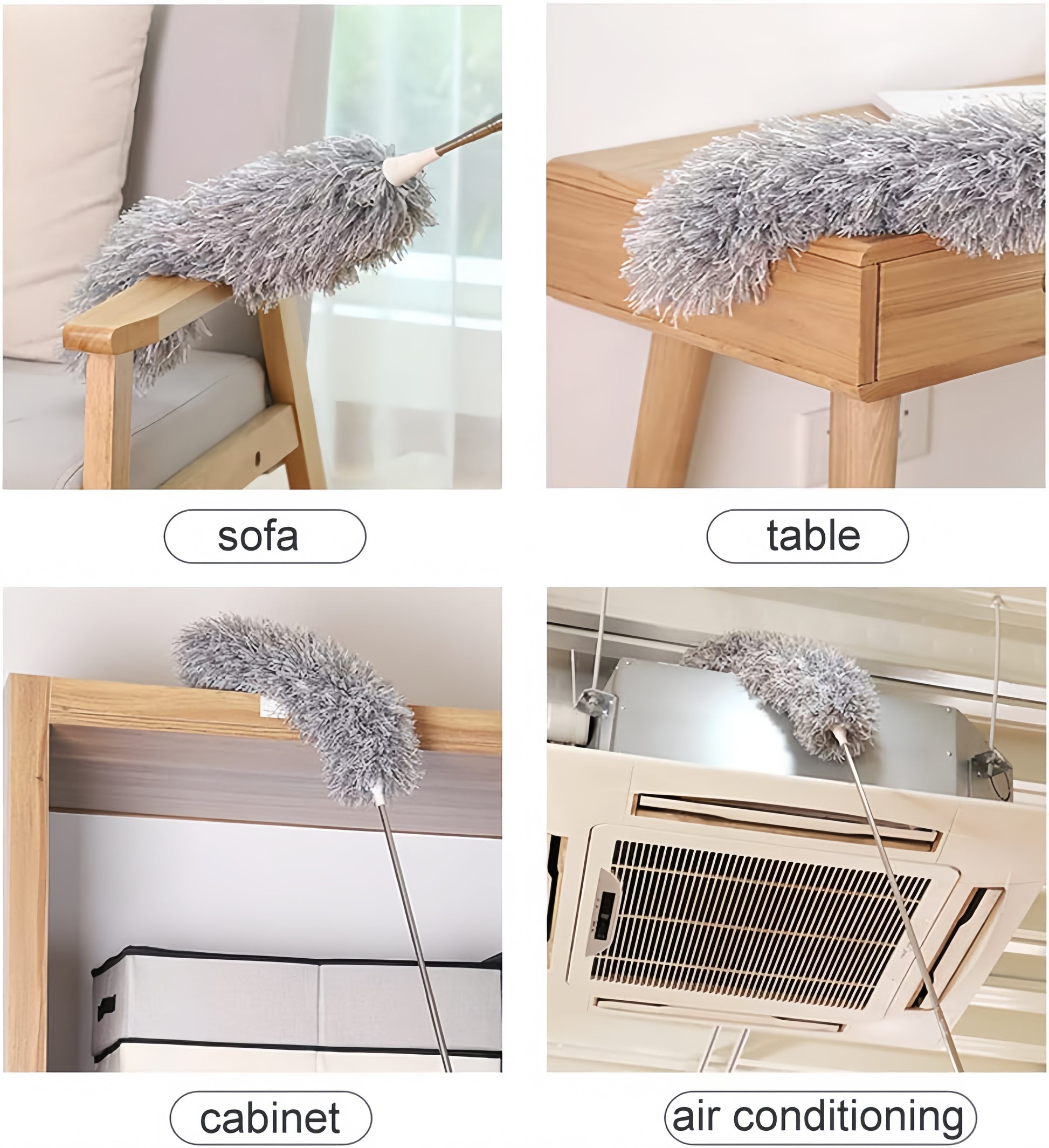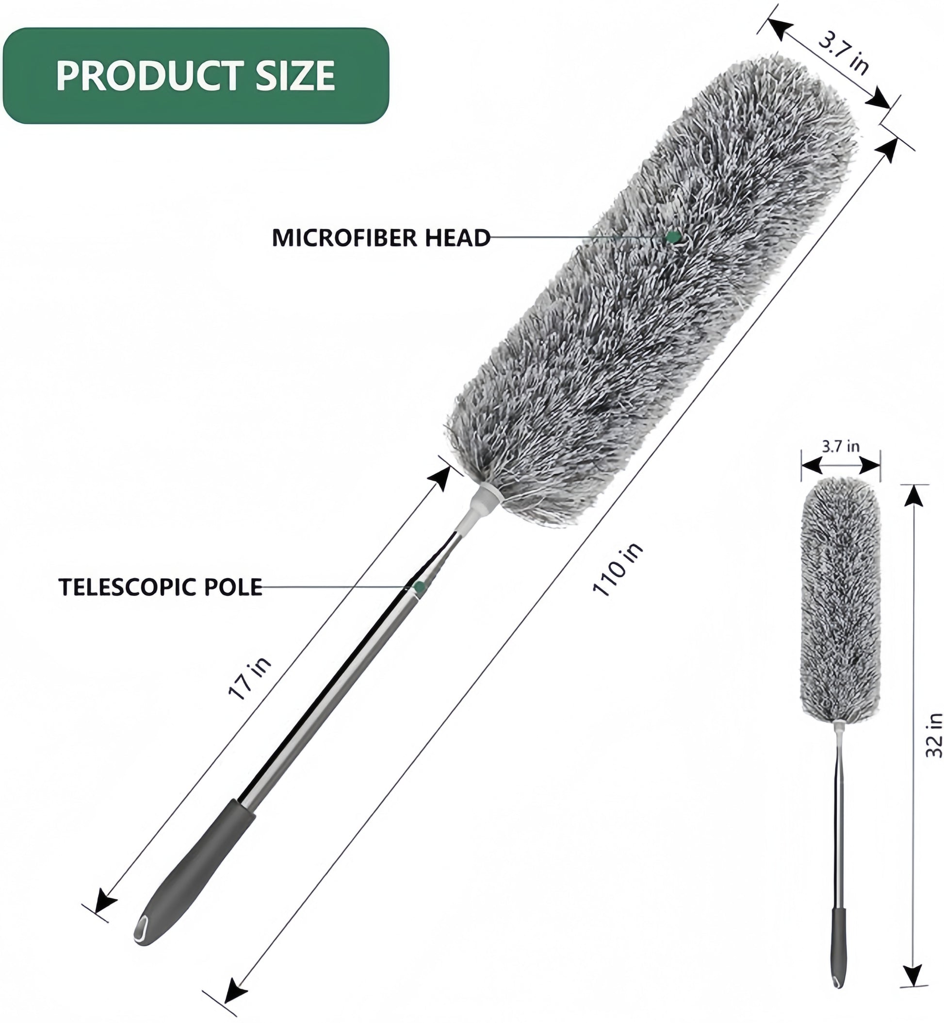 Featuring an impressive 10-foot telescopic handle, this duster provides unparalleled reach, allowing you to easily tackle high ceilings, ceiling fans, intricate light fixtures, and behind heavy furniture without the need for ladders or strenuous stretching.
